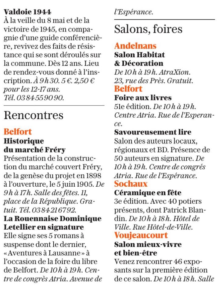 Le quotidien La Voix du Nord annonce ma participation à l'événement dans l'agenda de ses éditions, version "papier", du vendredi 4, du samedi 5 et du dimanche 6 avril 2025.