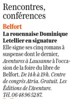Le site MySwitzerland qui appartient à l'organisation nationale Suisse Tourisme avait annoncé la participation de Dominique Letellier à cette Fête Livres & Disques.