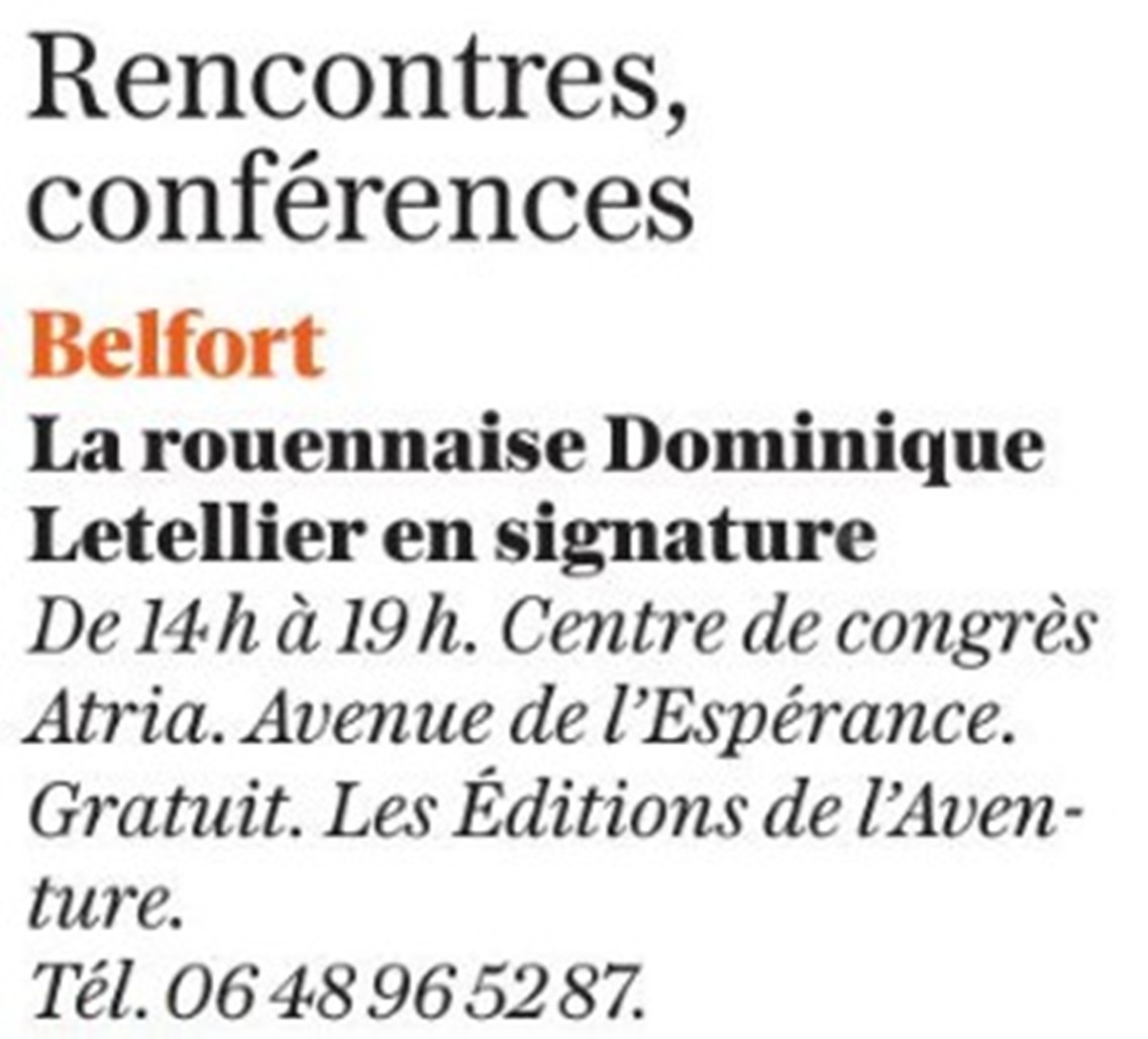 Le journal Le Courrier Cauchois annonce mes deux événements.