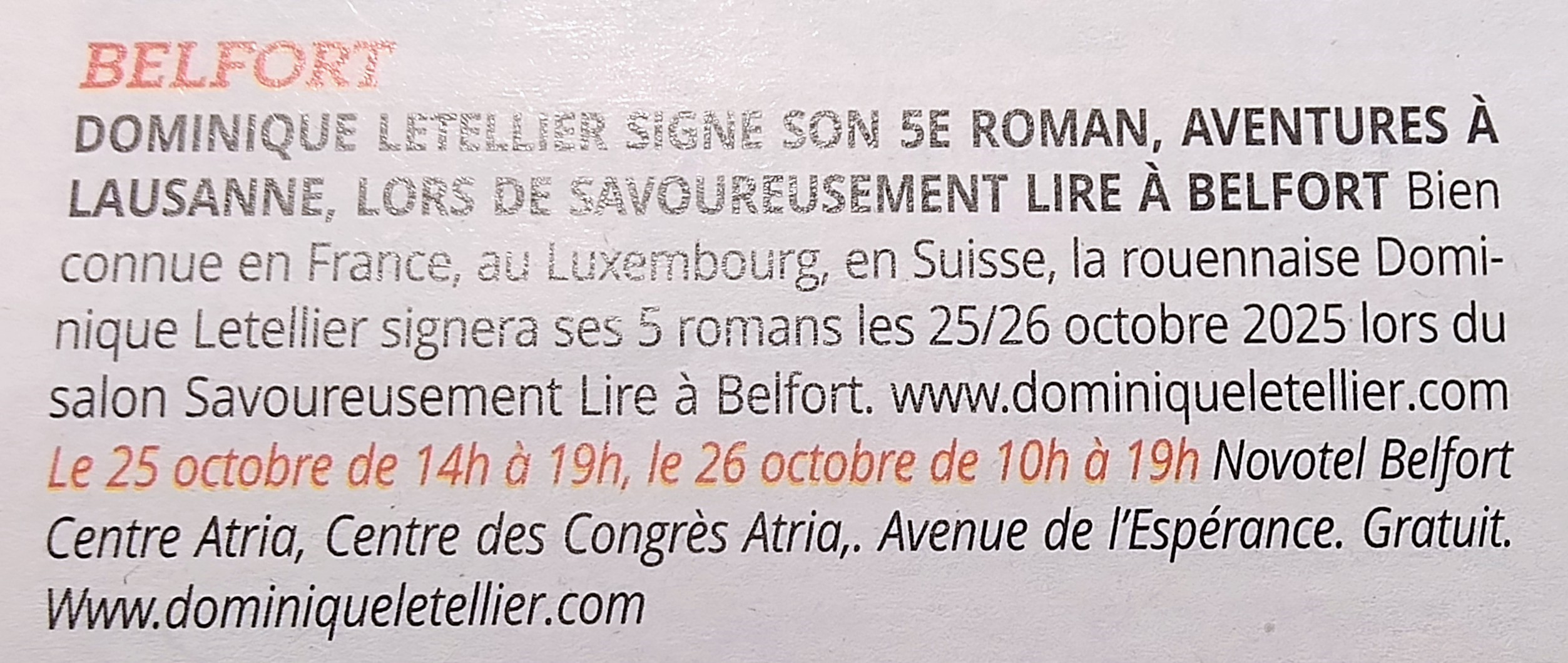 * Savoureusement Lire à Belfort (Territoire de Belfort, France) : le samedi 25 et le dimanche 26 octobre 2025
