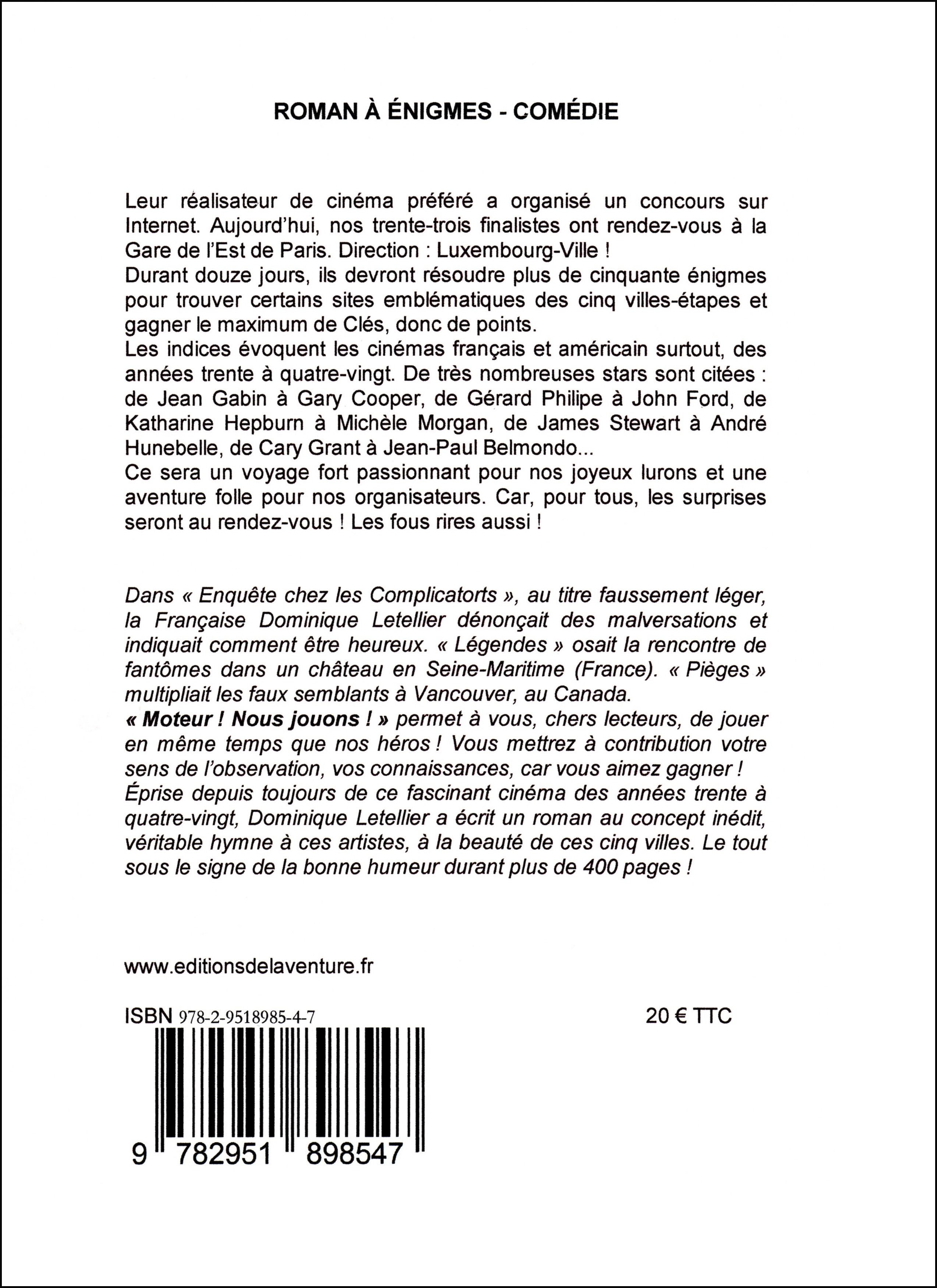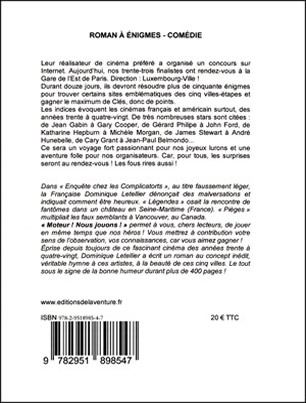 Éprise depuis toujours de ce fascinant cinéma des années trente à quatre-vingt, Dominique Letellier a écrit un roman au concept inédit, véritable hymne à ces artistes, à la beauté de ces cinq villes. Le tout sous le signe de la bonne humeur durant plus de 400 pages !
